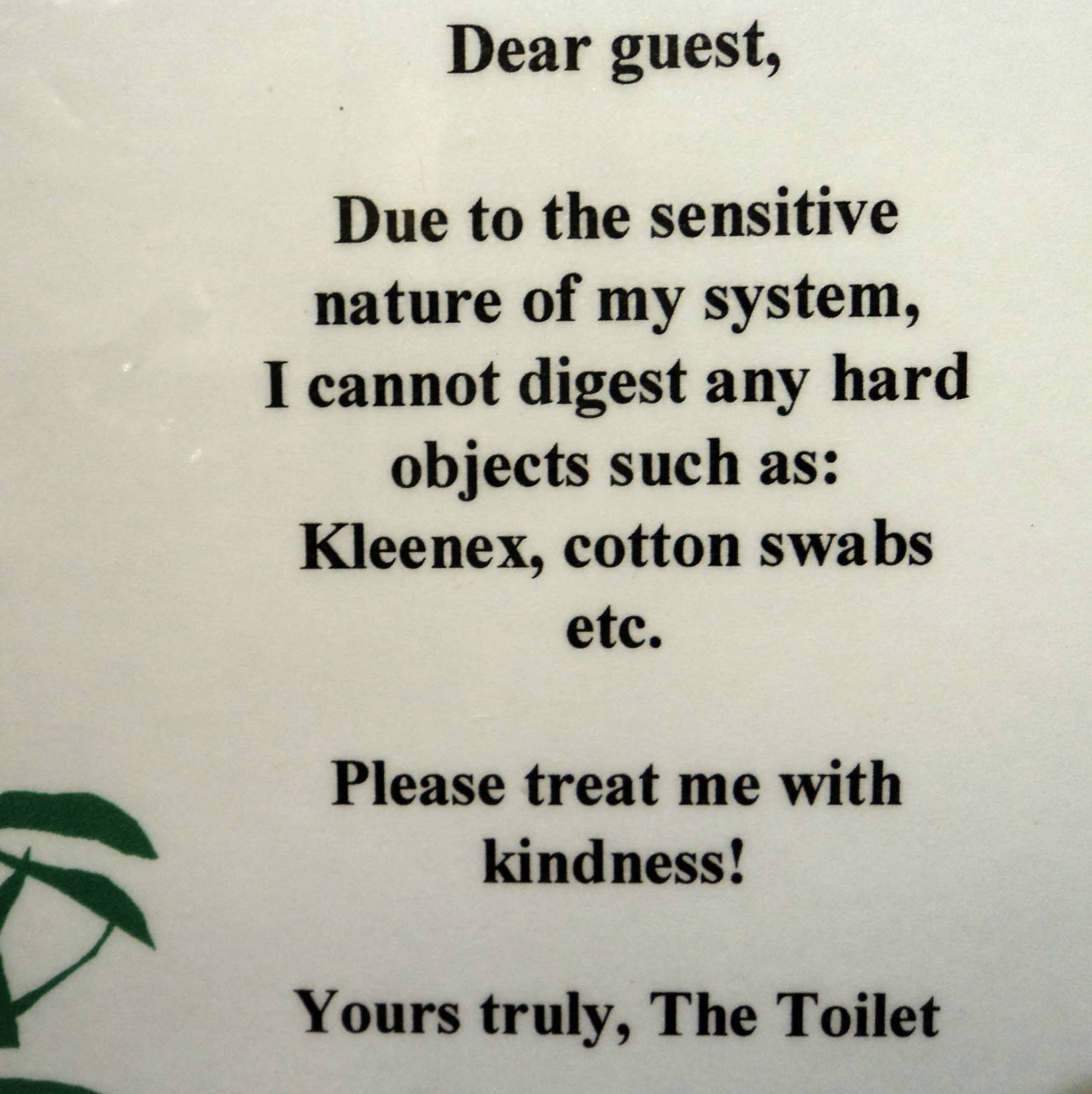 This is a message that was on the latrine in the cabin. I think we can all relate